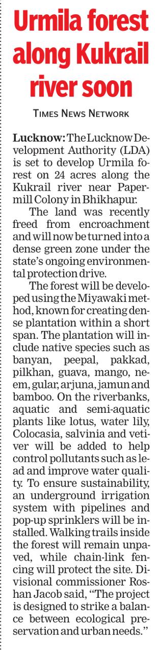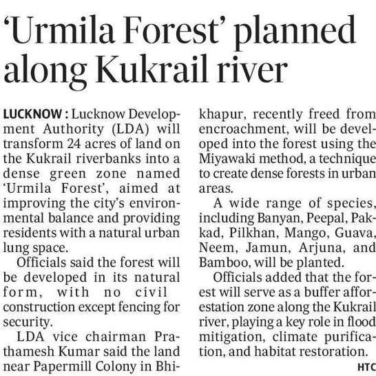 कुकरैल नदी किनारे विकसित किया जाएगा उर्मिला वन
