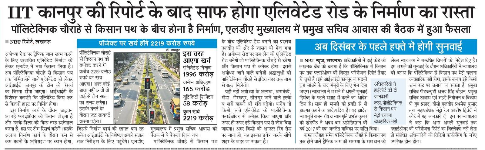 IIT कानपुर की रिपोर्ट के बाद साफ़ होगा एलिवेटेड रोड के निर्माण का रास्ता