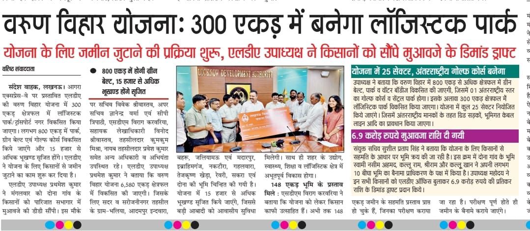 वरुण विहार योजना: 300 एकड़ में बनेगा लॉजिस्टिक पार्क
