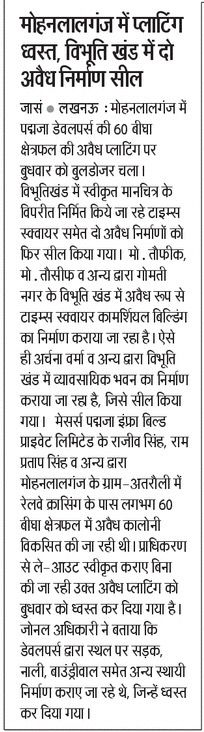 मोहनलालगंज में प्लांटिंग ध्वस्त, विभूति खंड में दो अवैध निर्माण सील