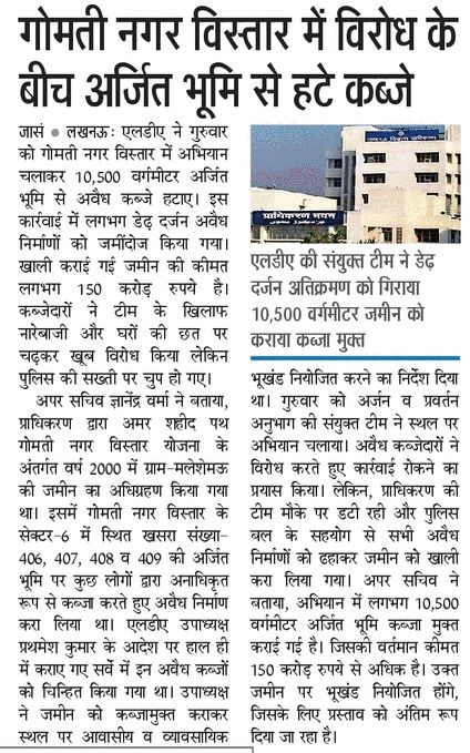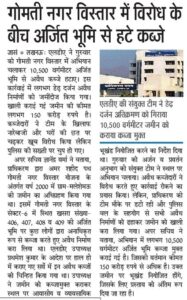 गोमतीनगर विस्तार में विरोध के बीच अर्जित भूमि से हटे कब्जे