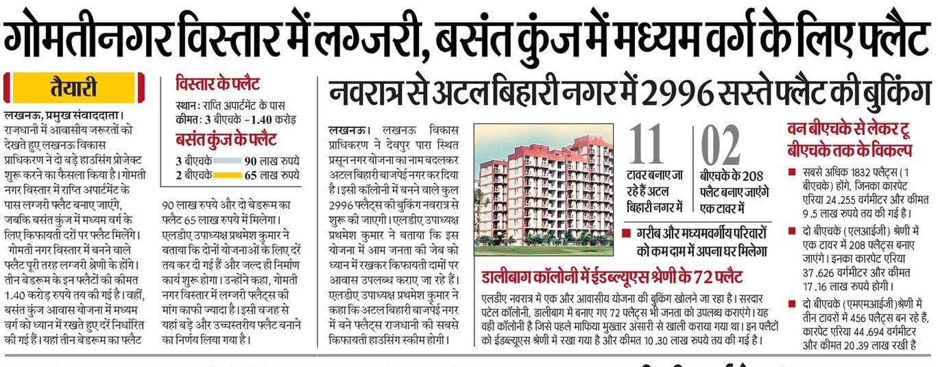 गोमतीनगर विस्तार में लग्ज़री, बसंत कुंज में मध्यम वर्ग के लिए फ्लैट