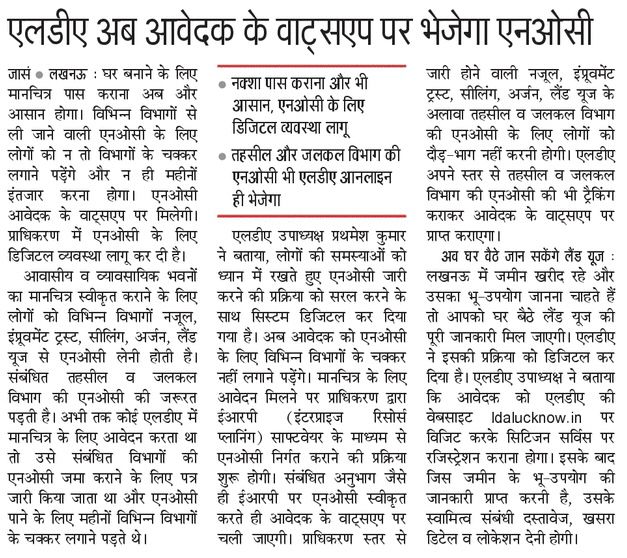एलडीए अब आवेदक के व्हाट्सएप पर भेजेगा एनओसी