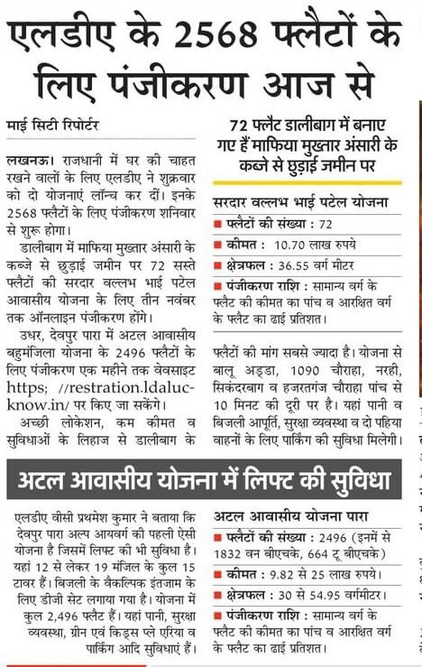 एलडीए के 2568 फ्लैटो के लिए पंजीकरण आज से