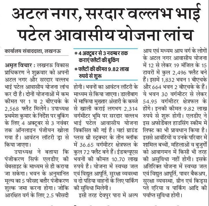 अटल नगर, सरदार बल्लभ भाई पटेल आवासीय योजना लांच