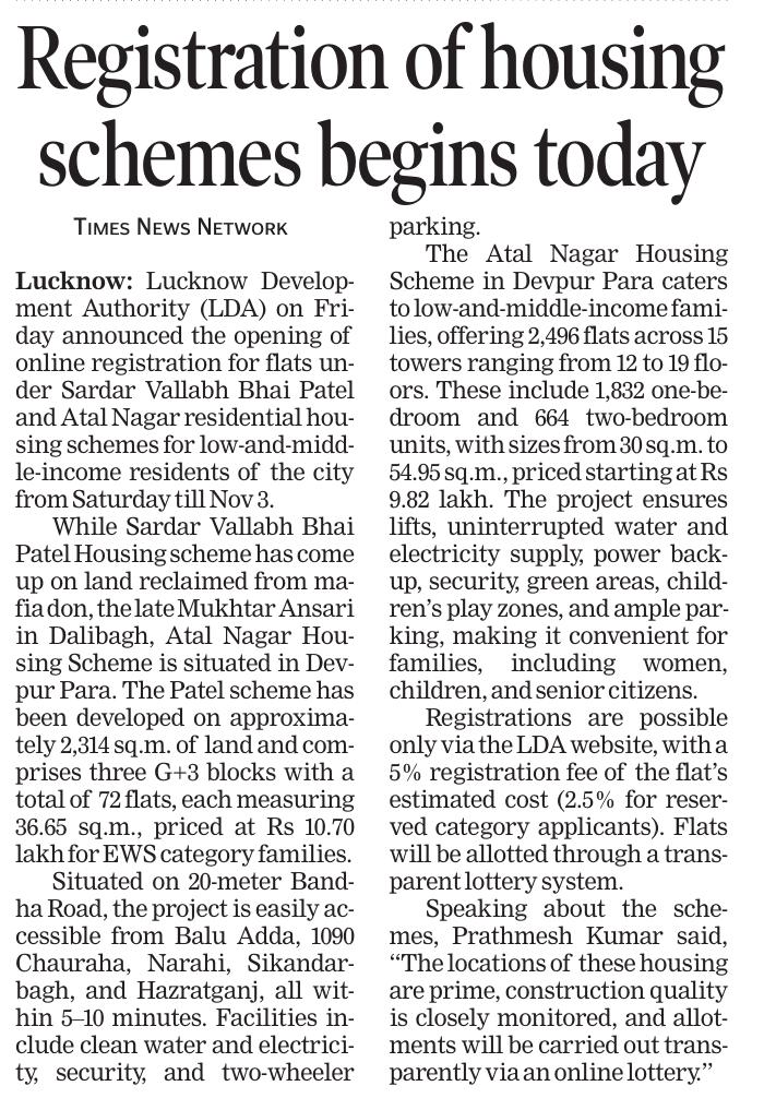 अटल नगर व सरदार पटेल आवासीय योजना में बुकिंग आज से