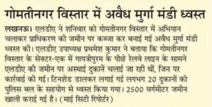गोमतीनगर विस्तार में अवैध मुर्गा मंडी ध्वस्त