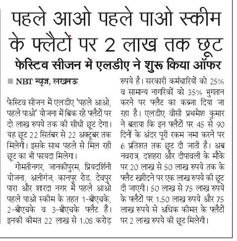 एलडीए के फ्लैटो पर दो लाख तक की छूट