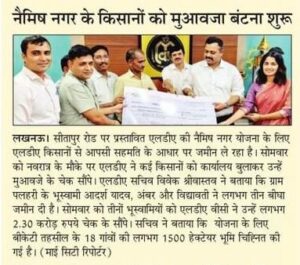 नैमिष नगर के किसानो को मुआवजे बटना शुरू